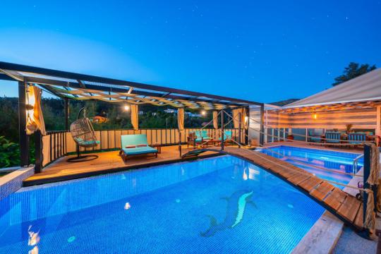 Kalkan’ın doğa ile iç içe muhteşem havası ve manzarasıyla adından söz ettiren İslamlar Köyü’nde bulunan Villa Siesta sizlere unutulmaz bir tatil deneyimi sunmak için tasarlanmıştır. Dünyaca ünlü Patara Plajı’nın doyumsuz panaromik manzarası eşliğinde gün batımının keyfini havuz başında çıkarabilirsiniz. Bahçe katında bulunan dış havuzun yanısıra master suit yatak odasında bulunan ısıtmalı iç havuzu sayesinde yaz-kış, gece-gündüz kesintisiz ve unutulmaz bir tatil deneyimi sizleri beklemektedir.