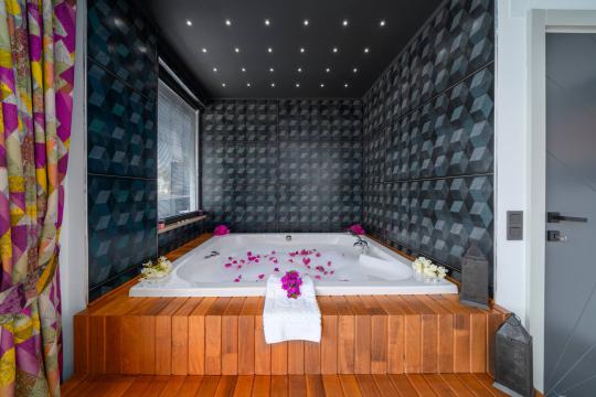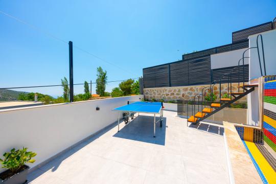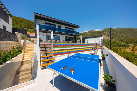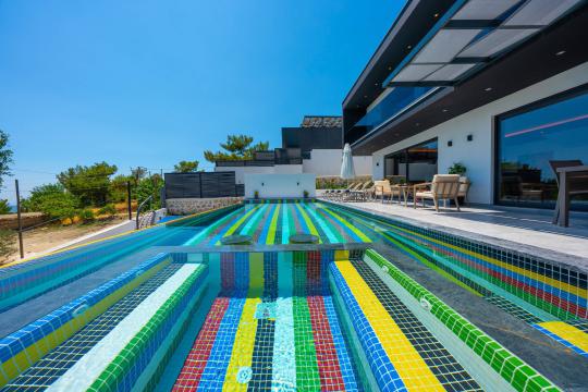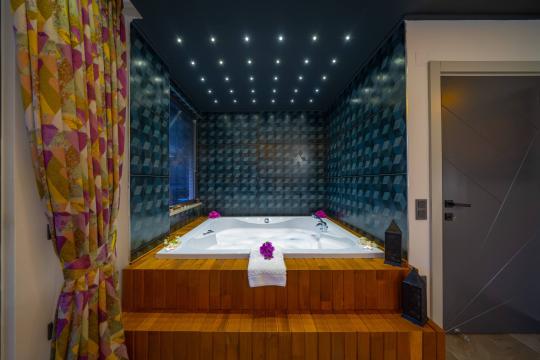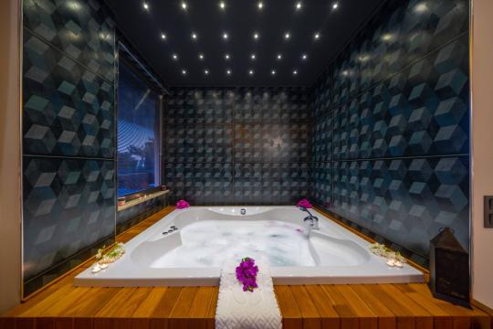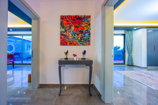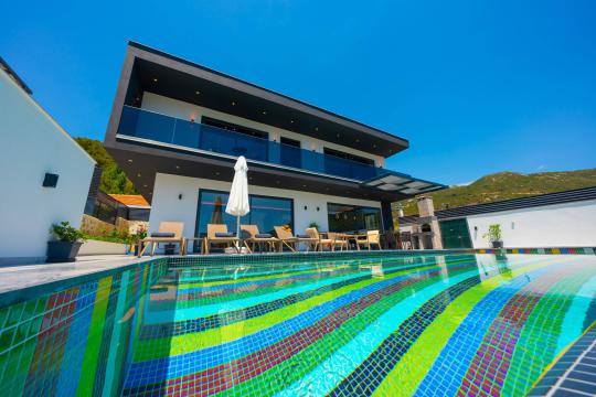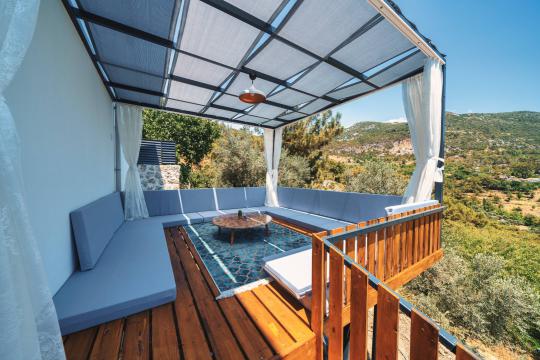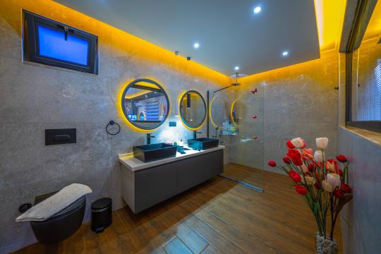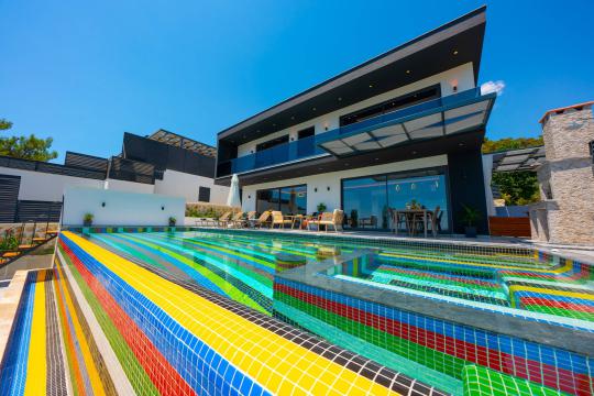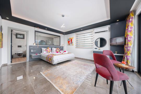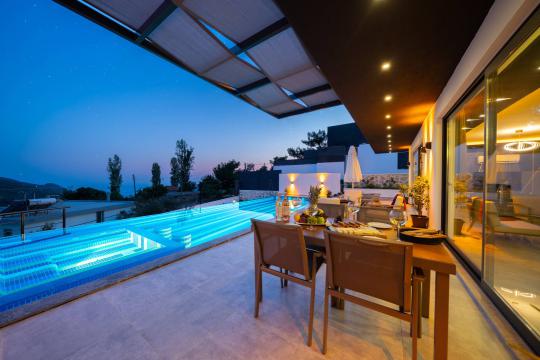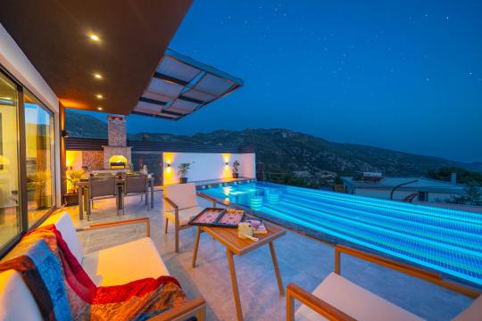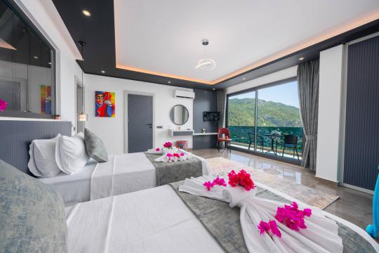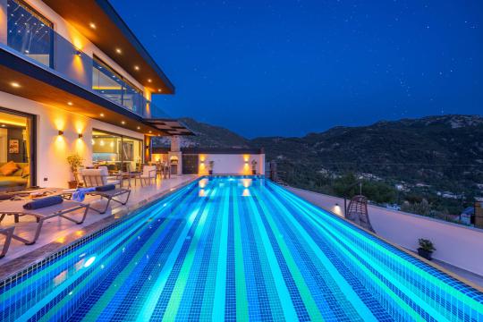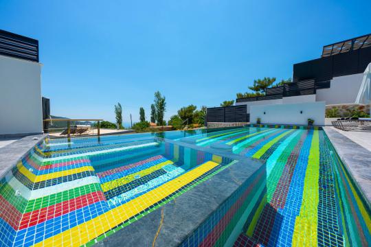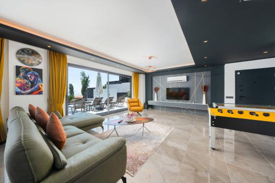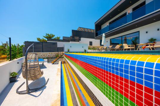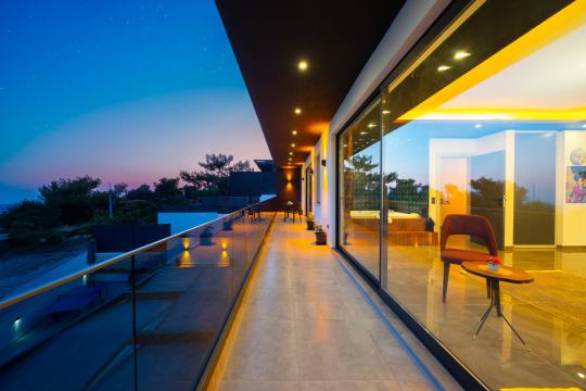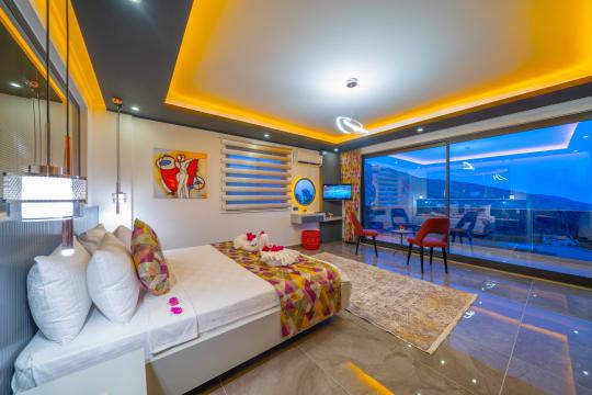 Doğa ve deniz manzaralı, Balayı çiftlerine uygun, Lüks iç ve dış dekarasyon,Oda içi jakuzi, Olimpik infinity havuz, Yatay havuz, Çocuk havuzu, Muhafazakar tatil, Modern iç ve dış eşyalar, Playstation, Masa tenisi, Her odada tv, Sinema odası, Koşu bandı, Tek ve Çift kişilik salıncak ve bina hırsızlık güvenliği için alarm bulunmaktadır.