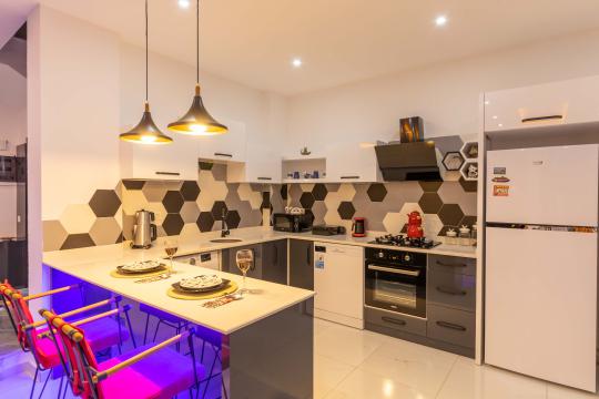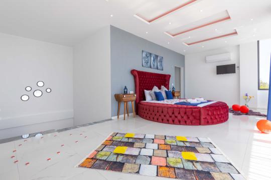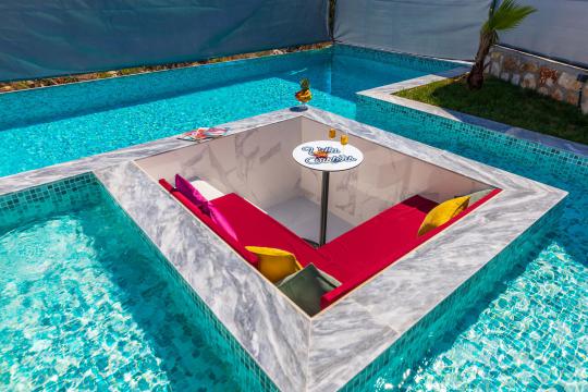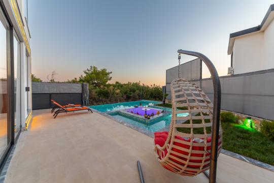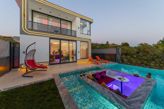 Villa Space, Kalkan Üzümlü mevkiinde konumlanan, özel havuzlu ve tam korunaklı balayı villamızdır. Renkli ve şık iç ve dış tasarıma sahip villamızda eğlence imkanları da bulunmaktadır. Bu sayede tatiliniz boyunca sıkılmadan eğlenceli anlar geçirebilirsiniz. Villamızda langırt gibi özellikler yer almaktadır.