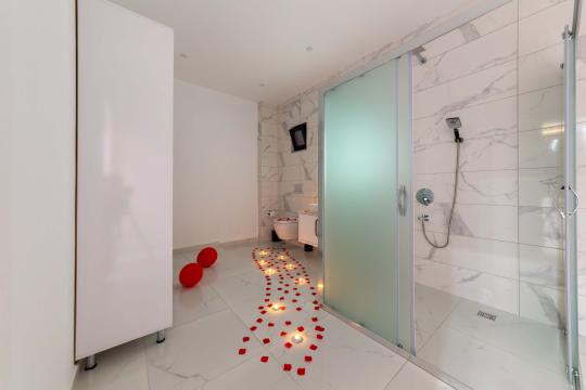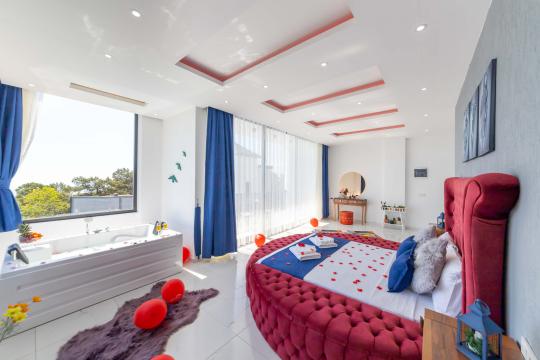 Villamız iki kattan oluşmaktadır tek yatak odalıdır. Yatak odasında çift kişilik yatak, banyo, jakuzi, televizyon ve klima bulunmaktadır, ikinci kattadır. Salon içerisinde ise mutfak, oturma grubu, klima, langırt ve televizyon bulunmaktadır.