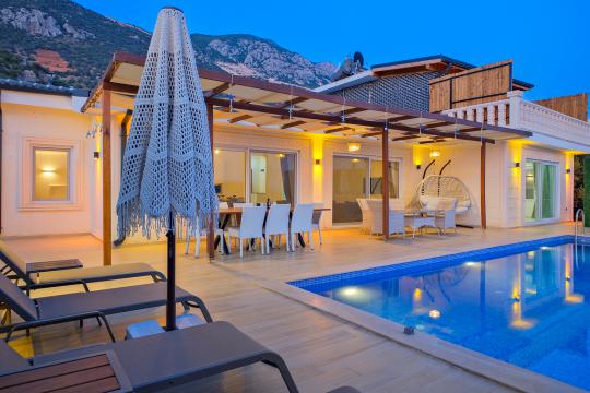 Villa Sufle 3, Kalkan sarnıçbaşı, bölgesinde konumlanmış 4 yatak odalı 8 kişi konaklama kapasiteli , yapımı 2024 yılında tamamlanmış lüks tatil villasıdır. Villamızda çift jakuzi vardır. Muhafazakar özel havuzu ile siz değerli misafirlerimize gözlerden uzak izole tatil imkanı sunan bu villamız, Muhafazakar ailelerin vazgeçilmezi olan bu villamız ferah ve estetik bir havaya sahiptir. Aileniz ve sevdiklerinizle birlikte unutulmaz tatil anıları biriktirmek istiyorsanız Villa Sufle 3 sizin için en doğru seçenek.