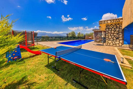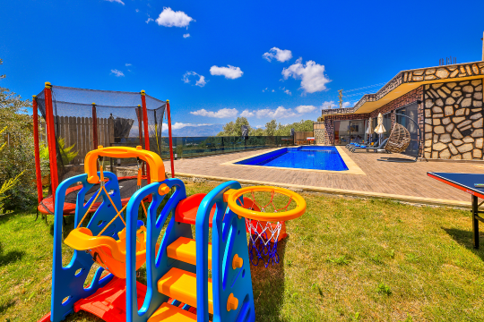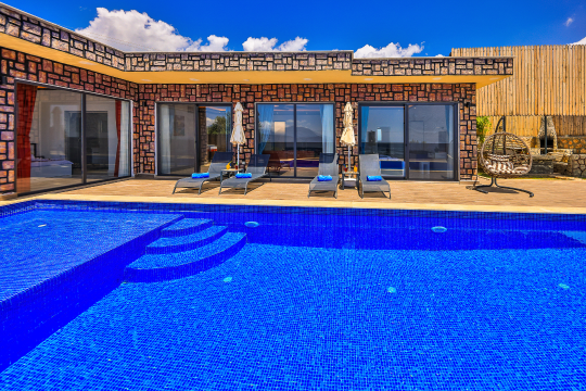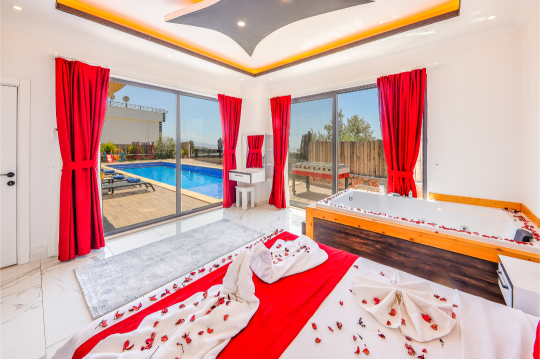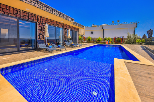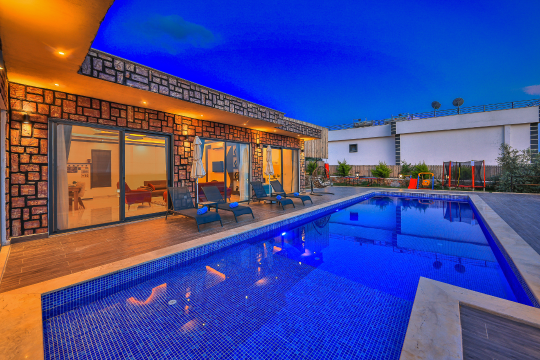 Korunaklı havuz alanına sahip olan villanın, havuz terasında kapasiteye uygun şezlong takımı, oturma grubu ve barbekü alanı bulunan villanın; yine havuz terasına açılan konforlu oturma odası ve tam donanımlı açık mutfağı, bir yatak odasında çift kişilik yatak, ebeveyn banyosu; diğer yatak odasında da iki tek kişilik yatak ve ebeveyn banyosu bulunmaktadır. Ayrıca yatak odasında jakuzi bulunan villa, dört mevsim tatil planlarınıza ev sahipliği yapmaya adaydır.