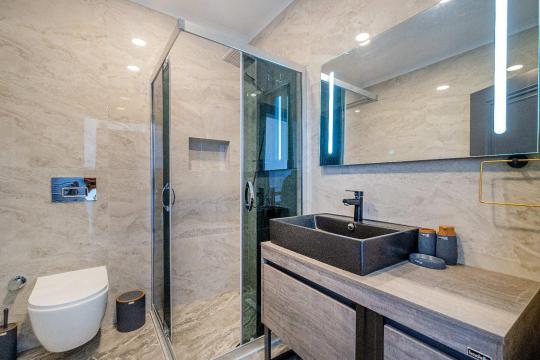 3. Yatak Odası 1 çift kişilik yatak + komodin + elbise dolabı + makyaj masası + klima + ebeveyn banyo