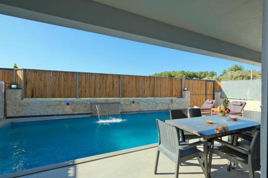 Doğa içinde, huzurlu bir konumu olan villanın havuz bahçe alanında kapasiteye uygun şezlong takımı, oturma grubu, barbekü alanı; havuz terasına açılan oturma odası, tam donanımlı açık mutfağı bulunmaktadır. İki yatak odasında çift kişilik yatak ve ebeveyn banyosu; üçüncü yatak odasında da iki tek kişilik yatak ve banyo bulunmaktadır. Ayrıca ebeveyn yatak odalarının birinde bulunan jakuzi sayesinde yılın tüm yorgunluğunu üzerinizden atabilirsiniz.
