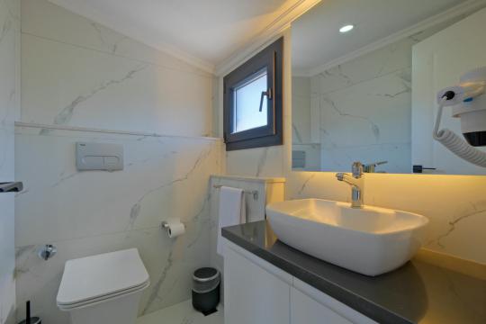 Doğa içinde, huzurlu bir konumu olan villanın havuz bahçe alanında kapasiteye uygun şezlong takımı, oturma grubu, barbekü alanı; havuz terasına açılan oturma odası, tam donanımlı açık mutfağı bulunmaktadır. İki yatak odasında çift kişilik yatak ve ebeveyn banyosu; üçüncü yatak odasında da iki tek kişilik yatak ve banyo bulunmaktadır. Ayrıca ebeveyn yatak odalarının birinde bulunan jakuzi sayesinde yılın tüm yorgunluğunu üzerinizden atabilirsiniz.