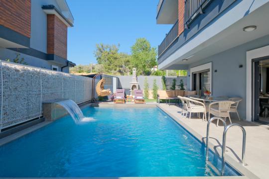 Seydikemer Merkez mevkiinde bulunan villa, 3 yatak odasıyla 6 kişilik konaklama kapasitesi sunmaktadır. Özel havuz alanına sahip olan villa, kalabalık aileler için uygundur.