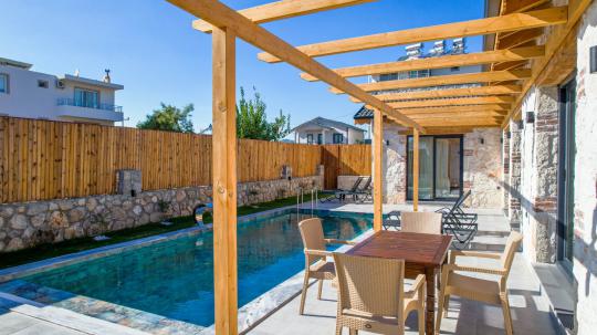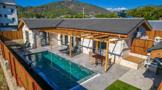 Fethiye Eldirek mevkiinde bulunan villamız, 2 yatak odası 4 kişilik konaklama kapasitesi sunmaktadır. Doğanın içinde bulunan villamız, özel bahçesi ve havuzuyla balayı çiftleri ve çekirdek aileler için ideal bir seçenektir.