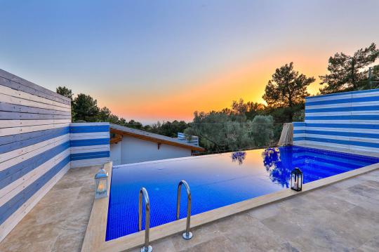 Kalkan’ın doğa ile iç içe muhteşem havası ve sakinliğiyle adından söz ettiren İslamlar Köyü’nde bulunan Villa Sunset 2 sizlere unutulmaz bir tatil deneyimi sunmak için tasarlanmıştır.Yemyeşil ağaçların arasında muhteşem manzarası ile saklı cennetiniz olacak olan villamızda özellikle şehrin gürültüsünden kaçan, iç içe geçen binalarda rahat edemeyen ve havuz başında dilediği gibi eğlenmek isteyen misafirlerin tüm bu ihtiyaçları karşılanacaktır. Villa Sunset korunaklı yapısı ile balayı ve muhafazakar konsepte de sahiptir.