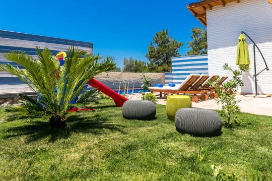 Bahçe: Villa bahçesinde havuz,masa tenisi,çocuk oyun alanı,barbekü,şezlong,şemsiye ve yemek masası bulunmaktadır.