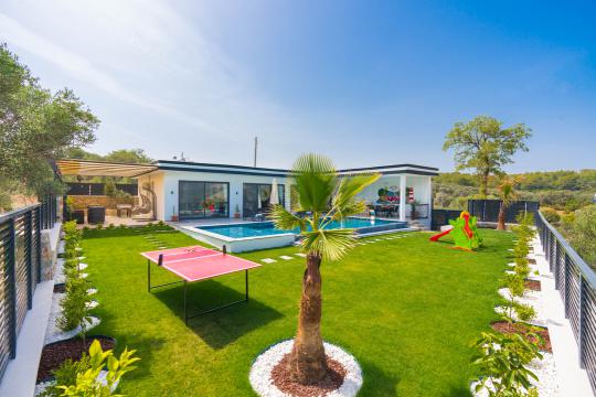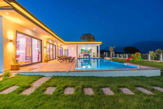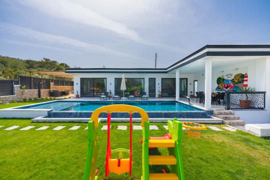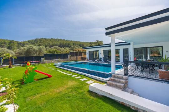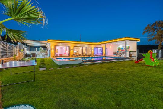 Bahçe: Villamızın geniş bahçesinde çocuklar için oyun alanı, masa tenisi, salıncak ve bahçe oturma alanı bulunmaktadır.