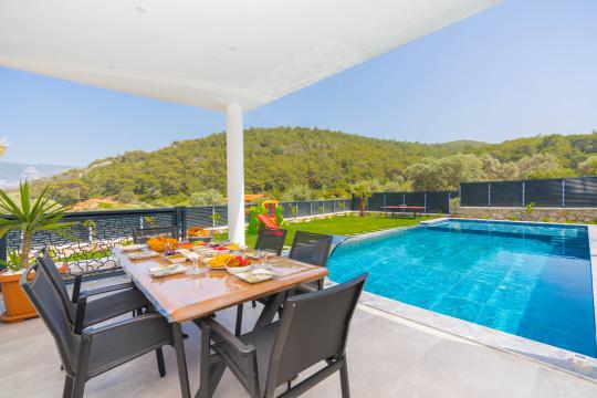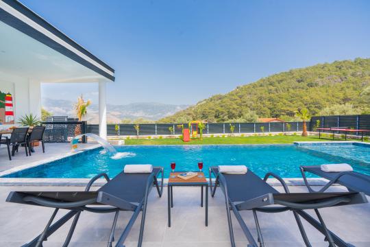 Havuz Terası: Terasında özel yüzme havuzu, şezlonglar, güneş şemsiyeleri, langırt, yemek masası, bahçe oturma grubu, barbekü alanı bulunmaktadır.