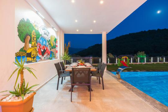 Villa Tablo Dünyaca ünlü Patara bölgesinde, Jakuzili kiralık tatil villasıdır. Son derece modern bir şekilde dekore edilmiştir. Villanın suit yatak odasında, jakuzi bulunmaktadır. Son derece zevkli döşenmiş Villa Tablo, muhafazakâr, aile ve kalabalık aile grupları için ideal bir seçimdir. 2 yatak odalı 5 kişi konaklama kapasitesine sahip villa unutulmaz anılar yaşatmak için sizleri beklemektedir.
