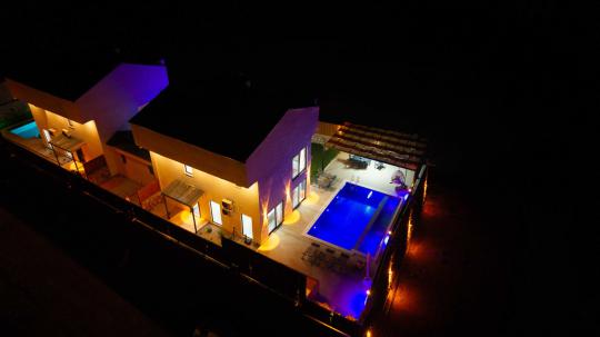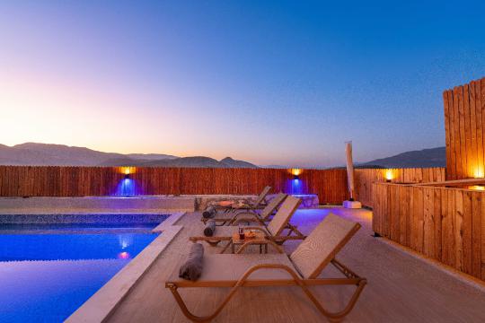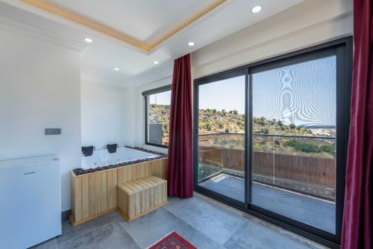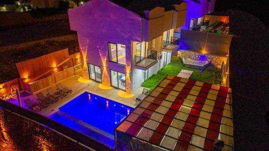 Ebeveyn yatak odalarının birinde bulunan jakuzi, tatiliniz boyunca dinlenme ve rahatlama imkanı sunar. Modern mobilyalarla döşenmiş iç mekânı, konforunuz için özenle hazırlanmıştır.