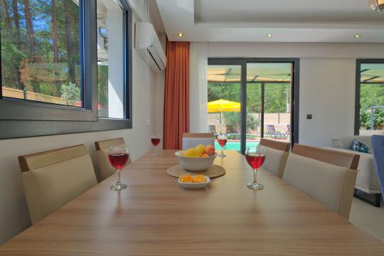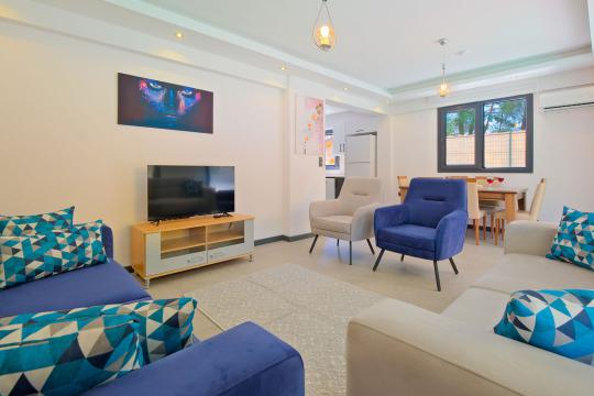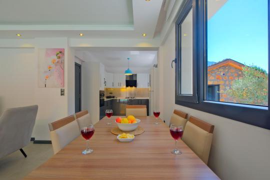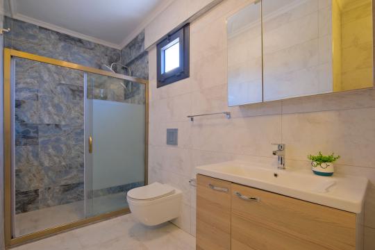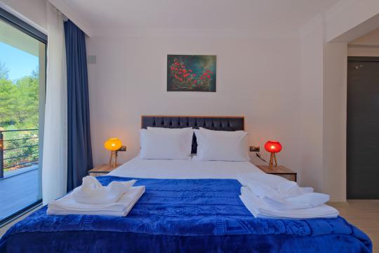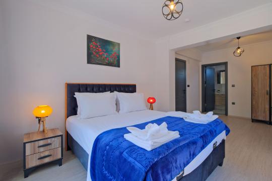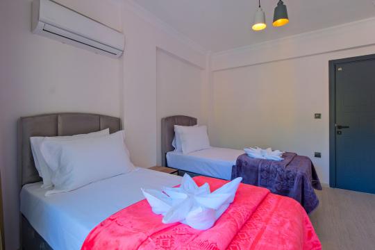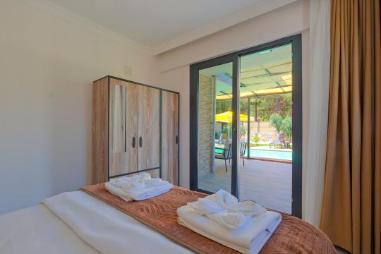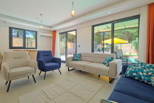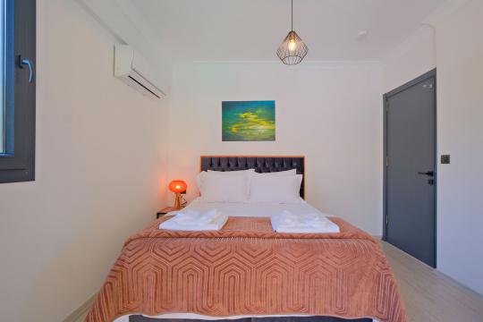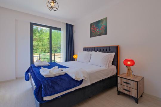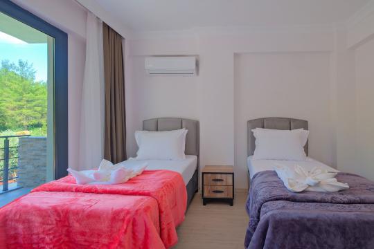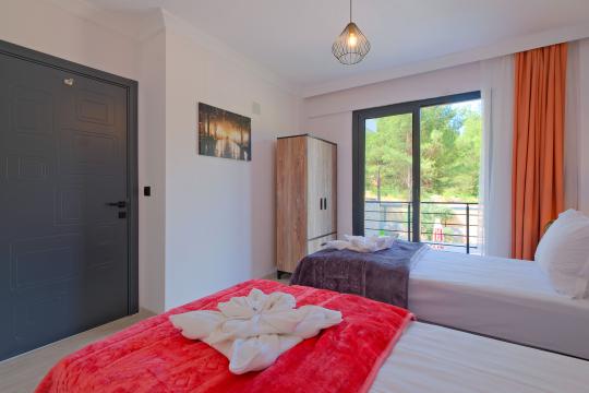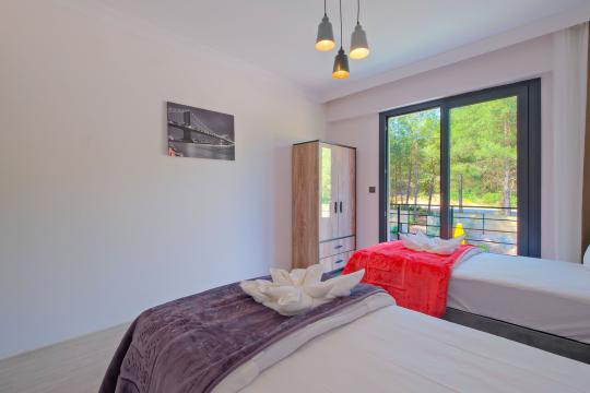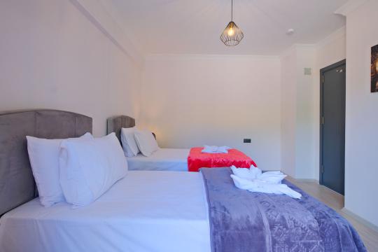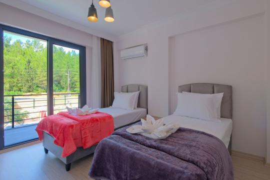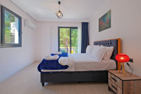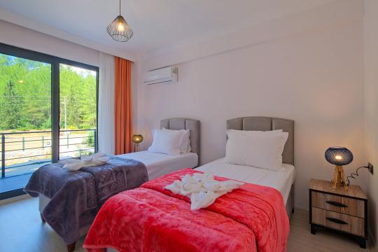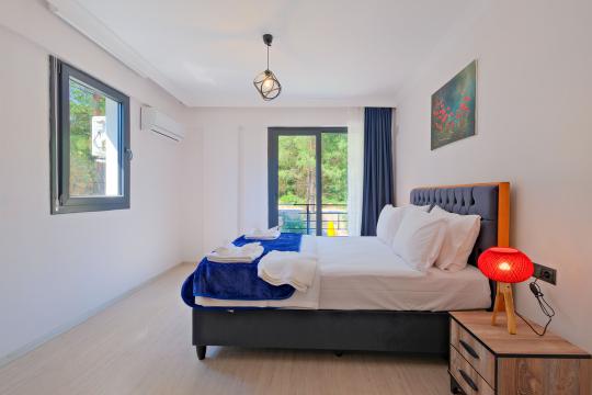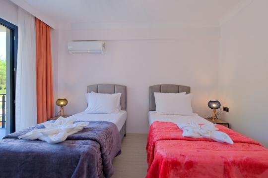 Şık ve konforlu donanıma sahip villamızın içerisinde dört yatak odası ve üç banyo mevcuttur. Giriş katında açık mutfak, salon, oturma alanı, odaların ortak kullanımı için wc-banyo, klima, TV ve bir yatak odası bulunmaktadır. Bu oda içerisinde bir çift kişilik yatak ve klima mevcuttur. İkinci katta üç yatak odası ve odaların ortak kullanımında wc-banyo mevcuttur. Bu katta yer alan bir yatak odası içerisinde çift kişilik yatak, ebeveyn banyosu ve klima bulunmaktadır. Diğer iki yatak odası içerisinde ise ikişer adet tek kişilik yatak ve klima mevcuttur.