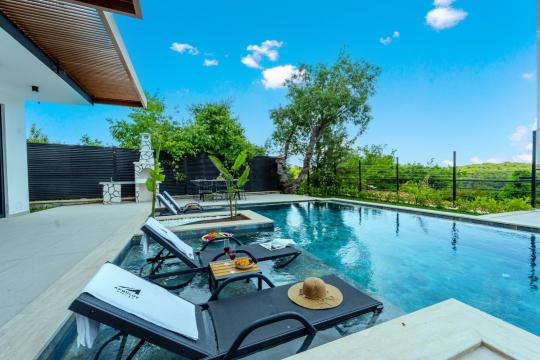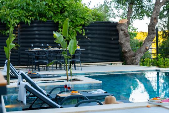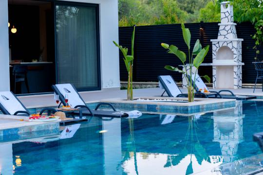 Doğa içinde bulunan villada kapasiteye uygun oturma alanı, şezlong takımı, barbekü alanı; havuz terasına açılan konforlu oturma odası, ihtiyaçlarınızı karşılayacak donanımlı mutfağı bulunmaktadır.