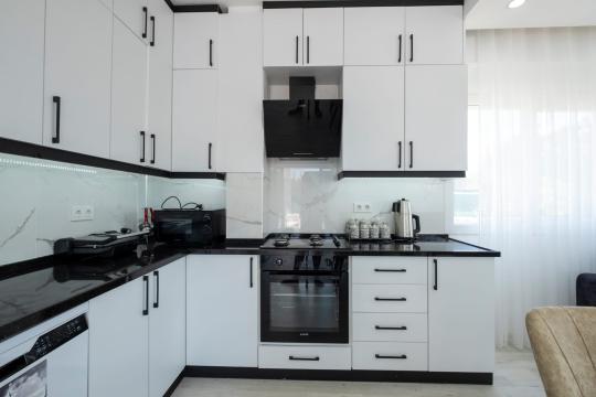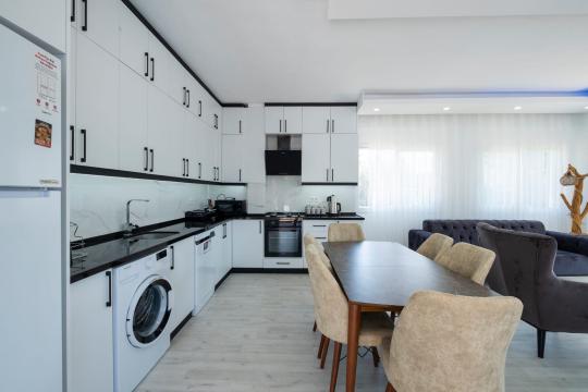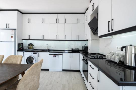 Mutfak : Modern Amerikan mutfak içerisinde buzdolabı, bulaşık makinesi, fırın, mikrodalga fırın, tost makinesi, çay makinesi, mutfak araç gereçleri(tabak&bardaklar, tencer&tavalar vb.) ve yemek masası mevcuttur.