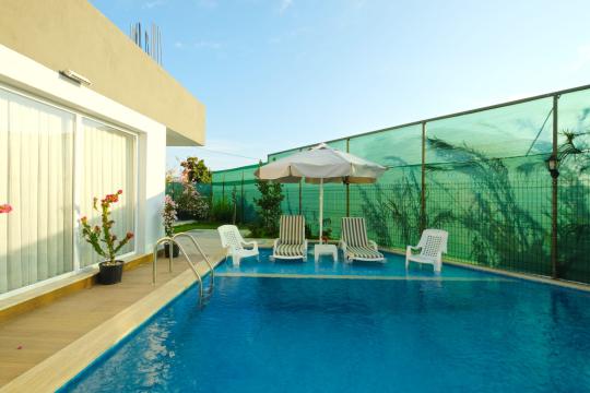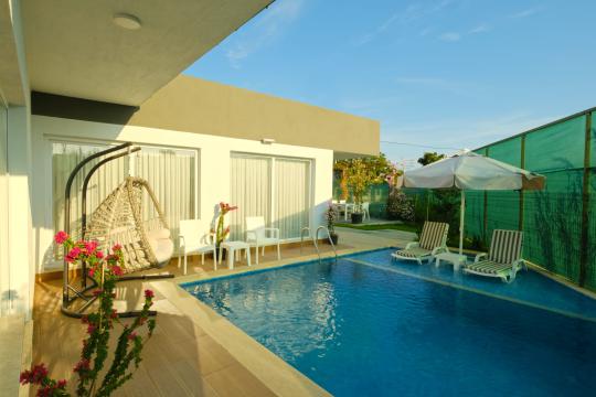 Havuz : Özel bahçe içerisinde ebatları; 8 x 6,5 ve derinliği 1.55 metre olmak üzere yüzme havuzu ve ebatları; 1,40 x 2,5 ve derinliği 55 metre olan çocuk havuzu bulunmaktadır. Havuz ve bahçe bakım ve temizliği sabahları veya akşamları günde 1 defa görevliler tarafından yapılmaktadır.