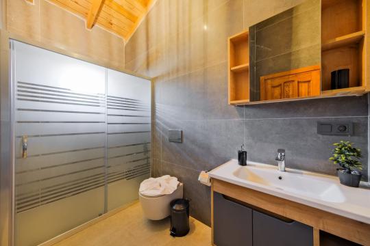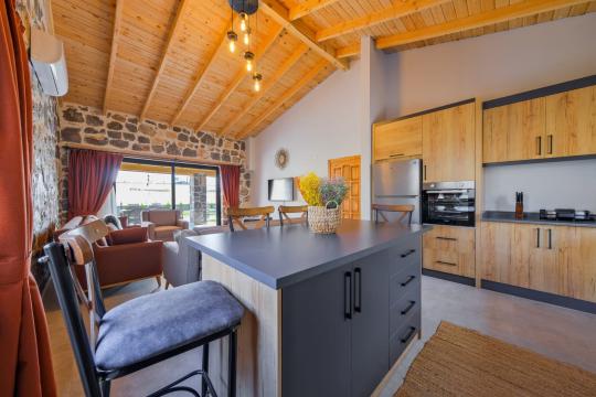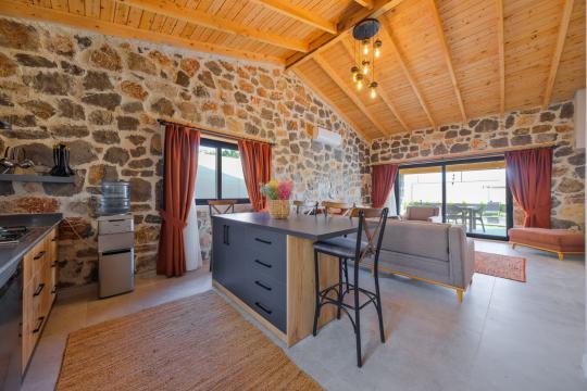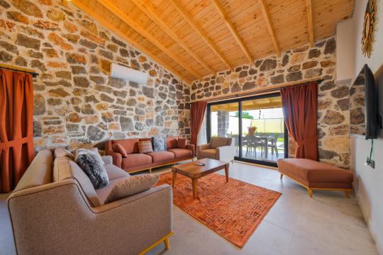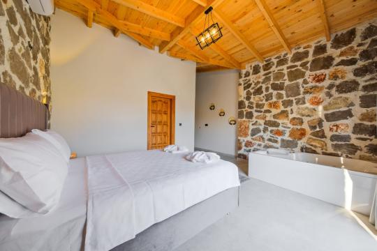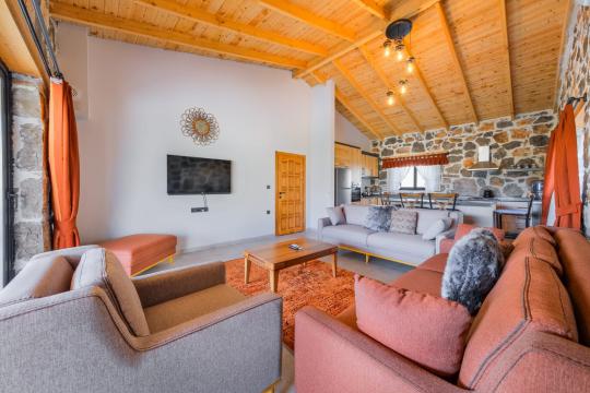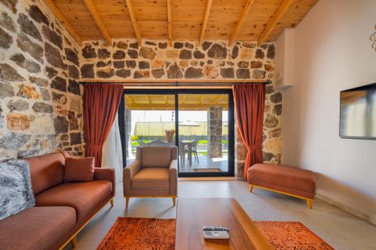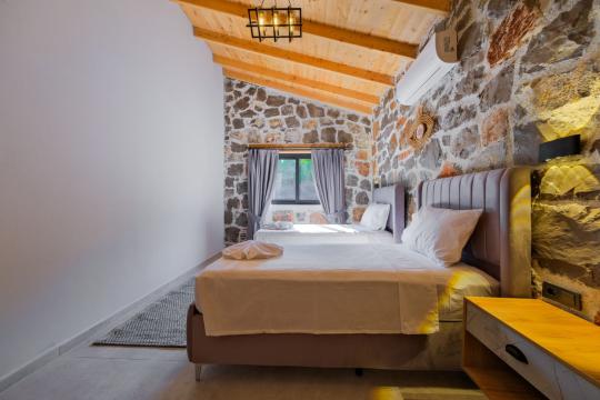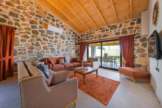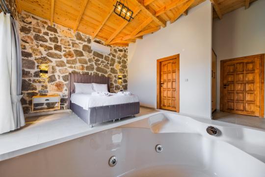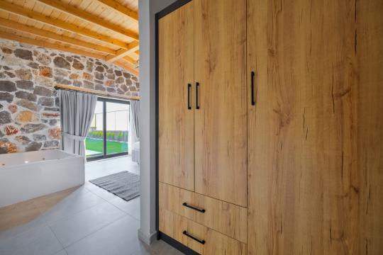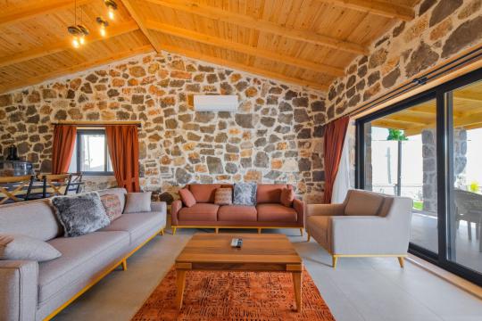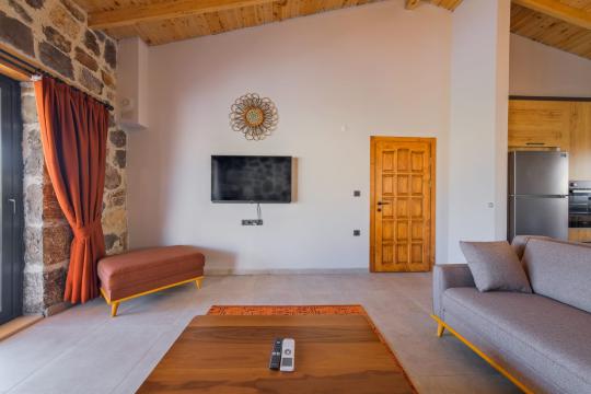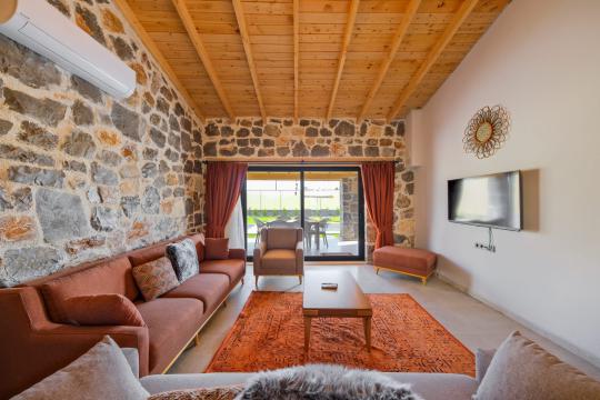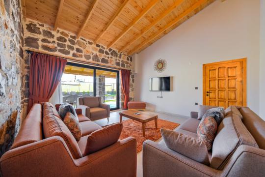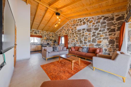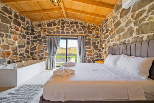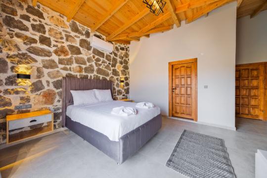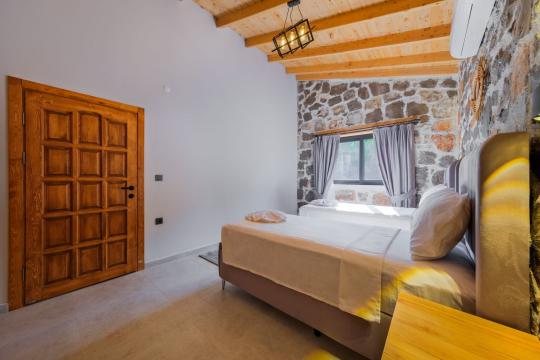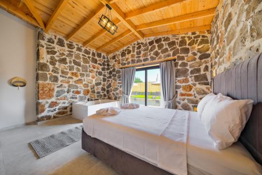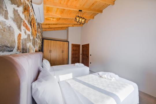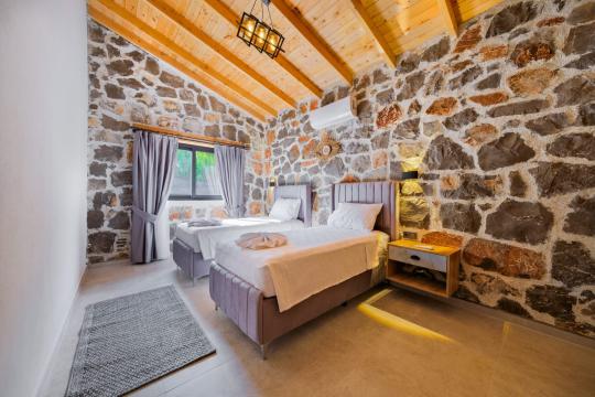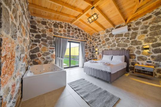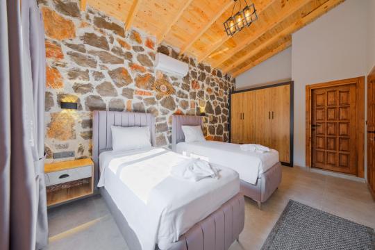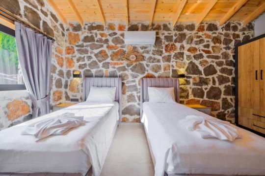 Villamızda toplam iki yatak odası bulunmaktadır. Birinci yatak odası içerisinde bir adet çift kişilik yatak, jakuzi, WC-Duş ve klima bulunmaktadır. İkinci yatak odası içerisinde iki adet tek kişilik yatak, WC-Duş ve klima mevcuttur, Ortak alanda açık mutfak-salon, klima, Wc ve TV yer almaktadır.