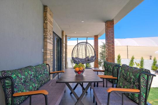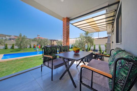 Fethiye'nin sakin Esenköy mevkisinde konumlanan bu villa, doğayla bütünleşmiş bir tatil deneyimi sunar. Üç yatak odalı ve altı kişilik konaklama kapasitesine sahip villamız, geniş bahçe terası ve ferah yaşam alanları ile misafirlerine huzurlu ve konforlu bir ortam sağlar. Villanın doğa manzaralı terasında, çevredeki yemyeşil alanların keyfini çıkarabilir ve geniş bahçede dinlenebilirsiniz. Modern iç dekorasyonu ve rahat atmosferiyle dikkat çeken bu villa, sakin bir tatil arayanlar için mükemmel bir kaçış noktasıdır. Esenköy’ün doğal güzellikleri ve huzur dolu ortamı, tatilinizi eşsiz kılacaktır.