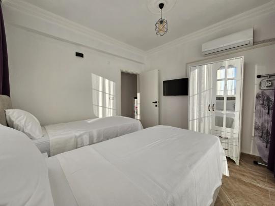 Üçüncü yatak odası içerisinde iki adet tek kişilik yatak, TV ve klima yer almaktadır.