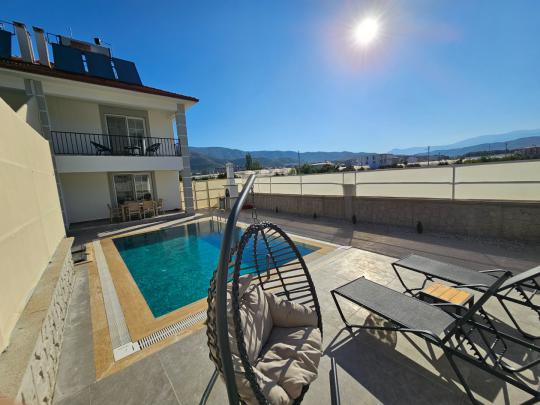 Villa Tufan 1, Fethiye - Karaçulha Esenköy mevkiinde yer alan, sakin ve ferah konumda bulunan özel havuzlu, havuzu oldukça korunaklı bir villamızdır. Konforlu ve şık dizaynı ile öne çıkan villamız balayı ve kalabalık arkadaş grupları için unutulmaz bir tatil fırsatı sağlamaktadır.