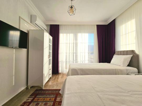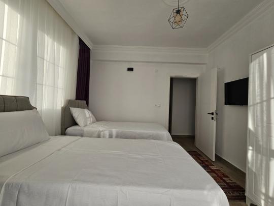 Üçüncü yatak odası içerisinde iki adet tek kişilik yatak, TV ve klima yer almaktadır.