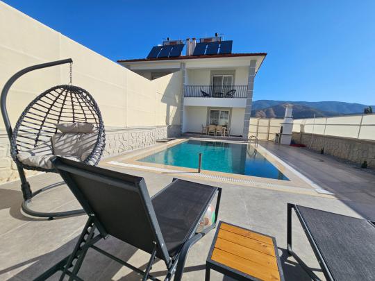 Villa Tufan 2, Fethiye - Karaçulha Esenköy mevkiinde yer alan, sakin ve ferah konumda bulunan özel havuzlu, havuzu oldukça korunaklı bir villamızdır. Konforlu ve şık dizaynı ile öne çıkan villamız balayı ve kalabalık arkadaş grupları için unutulmaz bir tatil fırsatı sağlamaktadır.