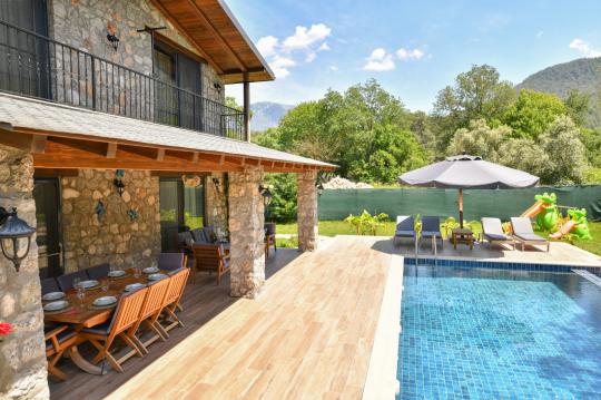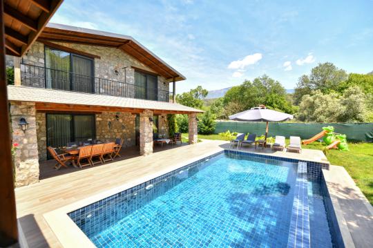 Kayaköy’ün doğasının ve yüzlerce yıllık tarihinin ortasında tamamen size ve ailenize özel dışarıdan havuzu görünmeyen tatil villası.Taş Modern yapı olarak son derece kaliteli malzeme kullanışlmıştır.