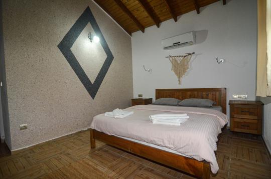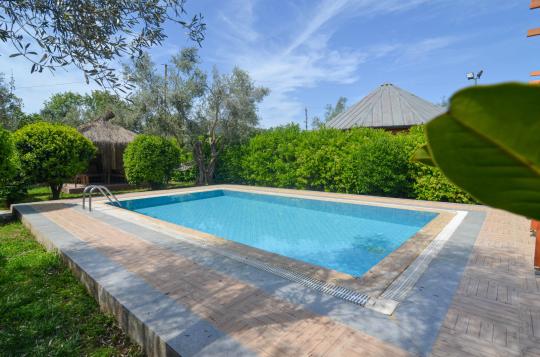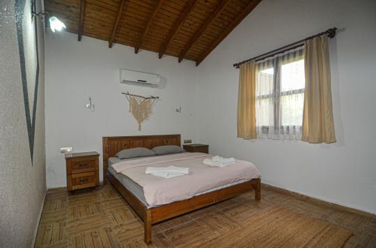 Tam korunaklı yüzme havuzu sayesinde balayı çiftleri ve gözlerden uzakta bir tatil yapmak isteyen misafirlerimiz için çok ideal olan Villa Tunç 1'in içerisinde iki yatak odası yer almaktadır ve 4 kişi için idealdir. Villalar dışında tesisin kendi restoranı, çocuk oyun alanı ve yeşil alanlar yer almaktadır. Restoranın özelliği ise içerisinde kullanılan tüm ürünlerin tesis içerisinde yetiştirilen tamamen doğal sebze ve meyveler ile yapılmasındandır. Villalarda konaklayan misafirlerimiz, restorandan evlerine servis şeklinde faydalanabilmektedirler. Restoranda köy kahvaltısı dışında akşam yemekleri için de menü bulunmaktadır ve villada konaklayan misafirlerimiz indirimli şekilde bu hizmetlerden faydalanabilmektedir.