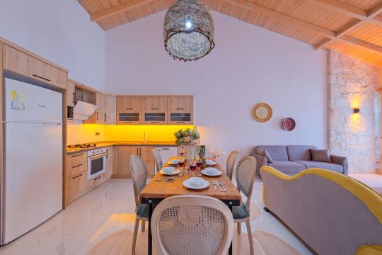 Mobilyalarda sedir ağacından ve pastel renklerden yardım alınmış olan villa, gerek iç dekorasyon gerek ise her detayın düşünüldüğü donanımlılığıyla sizleri memnun bırakacaktır. Denize ve merkeze konforlu sürüş mesafesinde olan konuma sahip olan villa, huzurlu bir tatil için siz değerli misafirlerini ağırlamayı beklemektedir.