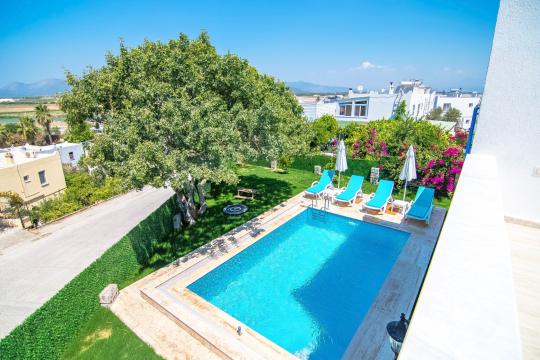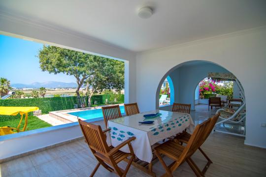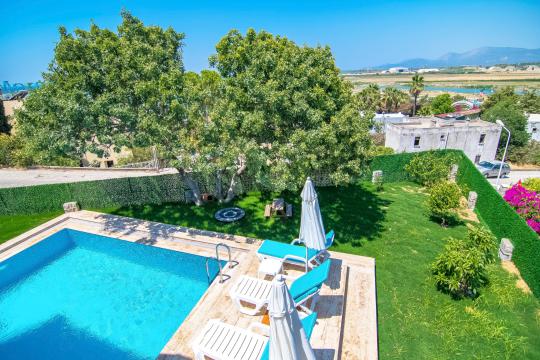 Villa Türkmen; Dalaman Merkezde konumludur. Denize 2 km mesafede yer almaktadır. 3 yatak odalı 6 kişi kapasiteli özel havuzu bulunan kiralık geniş aile ve arkadaşlar için ideal kiralık tatil villasıdır. Merkezi konumu sayesinde hem bölgeyi tanımanız hemen de havuzun ve denizin tadını çıkarmanız için elverişli bir tatil villasıdır.