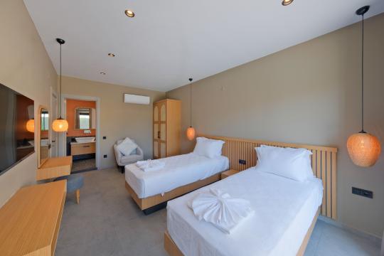 2. Yatak Odası : Genç suit yatak odasında ; 2 adet tek kişilik yatak,komodin,elbise dolabı,makyaj masası, TV,klima, banyo/WC bulunmaktadır.