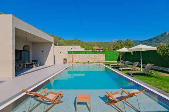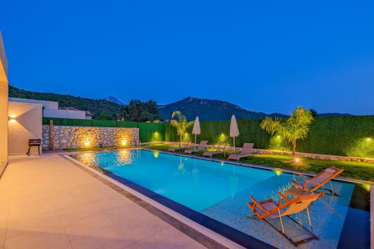 Özel Bahçe : Villamızın özel bahçesinde özel yüzme havuzu,şezlong,bahçe oturma gurubu, sauna ve BBQ bulunmaktadır.