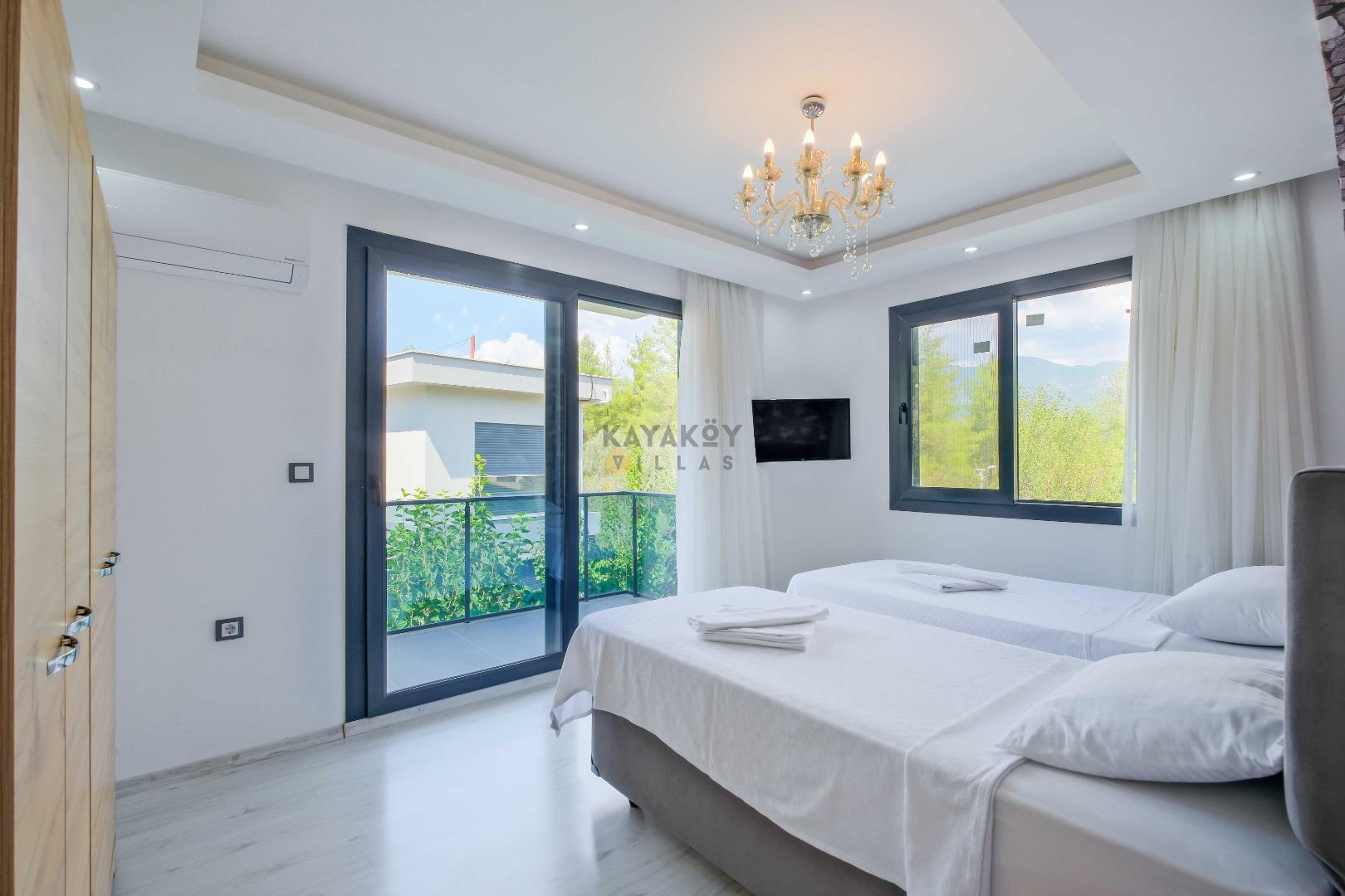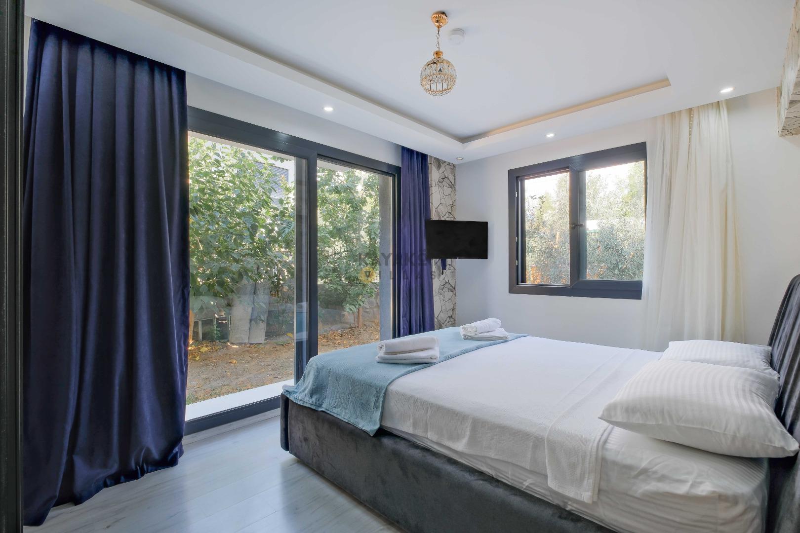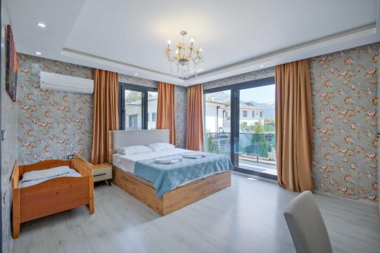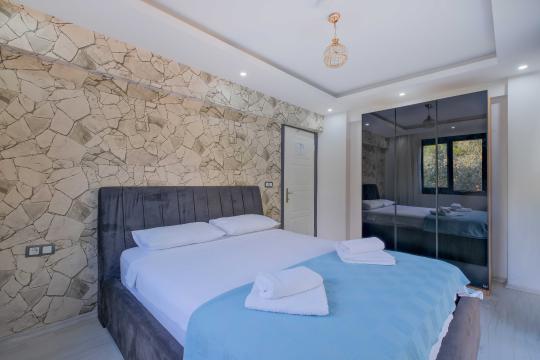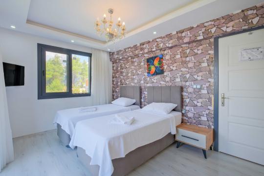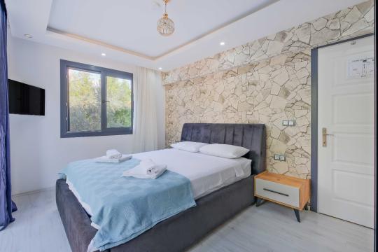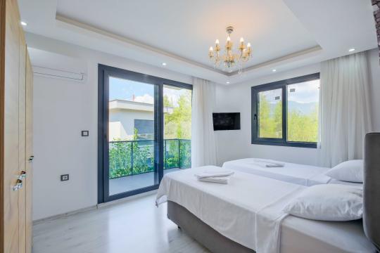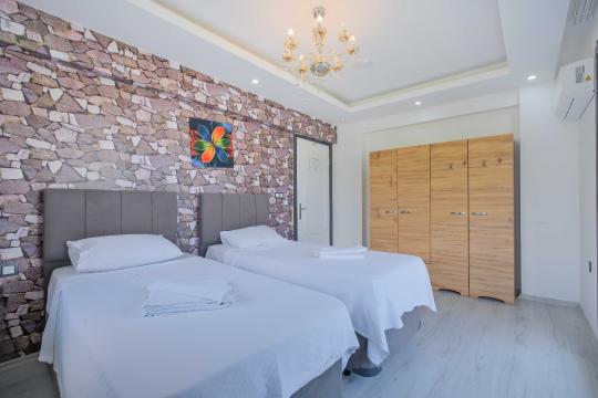 Villamızın içerisinde dört yatak odası bulunmaktadır. Birinci yatak odasında bir adet çift kişilik yatak yer almaktadır. İkinci yatak odası içerisinde bir adet çift kişilik yatak, ebeveyn banyosu, klima mevcuttur. Üçüncü yatak odası içerisinde iki adet tek kişilik yatak, ve klima bulunmaktadır. Dördüncü yatak odasında iki adet tek kişilik klima yer almaktadır. Ortak alanda ise açık mutfak - salon, 2 adet WC - Duş, klima yer almaktadır. Toplamda 8 kişinin rahatlıkla konaklayabileceği villamız unutulmaz bir tatil için sizleri beklemektedir.