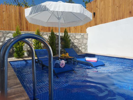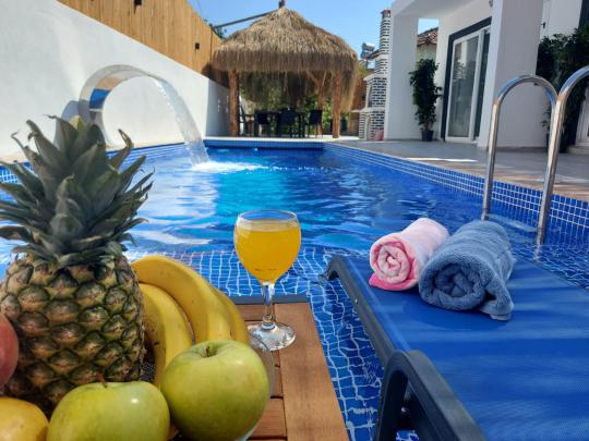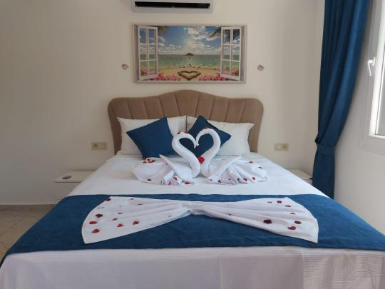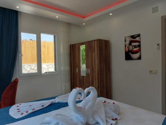 Villamız tek yatak odalıdır. Yatak odası içerisinde çift kişilik yatak ve klima yer almaktadır. Salon içerisinde ise mutfak, televizyon, oturma grubu, banyo, wc ve klima mevcuttur. Villamızda jakuzi odası da bulunmaktadır.