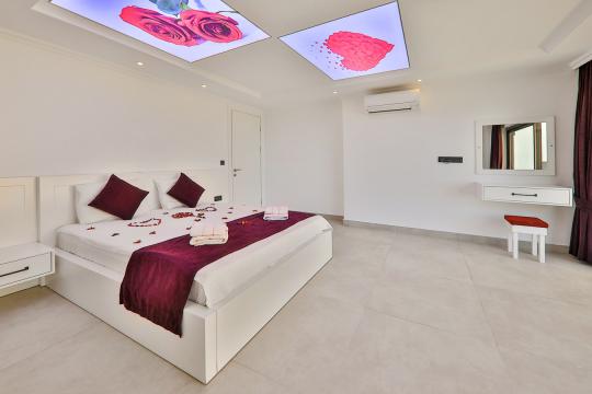 Detayları : Çift kişilik yatak, Elbise dolabı, Komodin, Makyaj masası, Klima, Banyo ve Kapalı havuz bulunmaktadır.