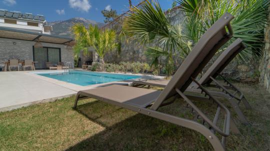 Bu sakin, şık mekânda arkanıza yaslanın ve rahatlayın. Babadağ eteklerinde bulunan oldukça konforlu bu villamızın korunaklı havuzu ve bahçesi sayesinde gözlerden uzak, özel bir tatil geçirerek tüm yılın yorgunluğunu huzurlu bir ortam içerisinde atabilirsiniz. Tertemiz doğa havasına sahip olan Fethiye, Ovacık'ta sessiz ve sakin bir ortamda tatilinizi huzurlu bir şekilde geçirebilirsiniz.