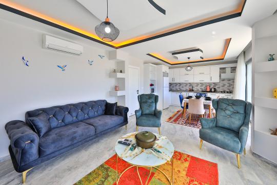 - Ferah İç Mekân: Salon, TV, klima ve modern yaşam alanı ile konfor.