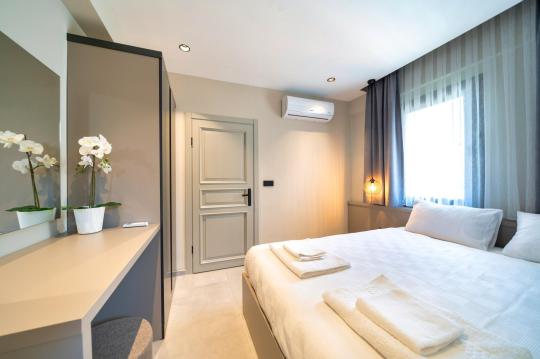 1. Yatak Odası : Çift kişilik yatak, Komidin, Klima, Elbise dolabı, Küvet, Banyo ve Balkon bulunmaktadır. (1. Kat)