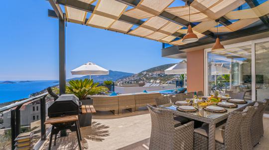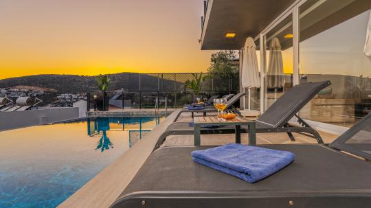 Bahçe: Villa bahçesinde havuz,barbekü,şezlong,şemsiye ve yemek masası bulunmaktadır.