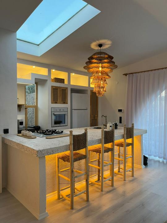 Villa Yelken, 4 kişilik kapasiteye sahip villada 2 yatak odası yer alıyor. Ana yatak odasında şık bir küveti mevcut. Açık mutfağı ve kendine ait bahçesi var. Mutfağında bulaşık makinesi, buzdolabı, ankastre fırın, ve mutfakta ihtiyaç olan hemen hemen bütün gereçler bulunuyor. Villanın bahçesinde özel havuzu mevcut. Barbekü, masa, sandalyeler, şezlonglar ve şemsiyeler bahçe keyfini sınırsız yaşamanıza imkan tanıyor. Salonunda oturma grubu, televizyon, eşyalar bulunurken, tüm odalar için ayrı klima imkanı var.