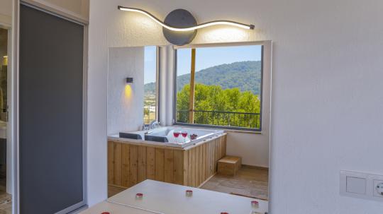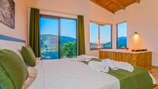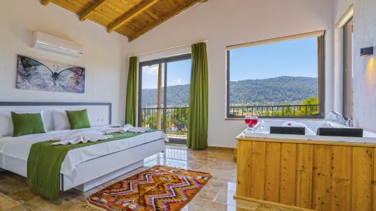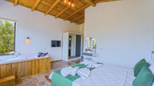 1. Yatak Odası : 1 adet çift kişilik yatak, makyaj masası, klima, elbise dolabı, komodin, Banyo&WC ve Jakuzi bulunmaktadır.