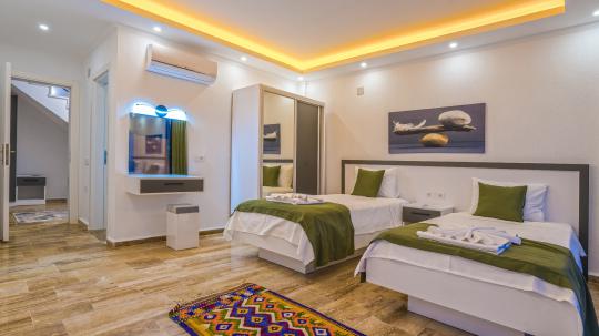 2. Yatak Odası : 2 adet tek kişilik yatak, makyaj masası, klima, elbise dolabı, komodin, Banyo&WC bulunmaktadır.