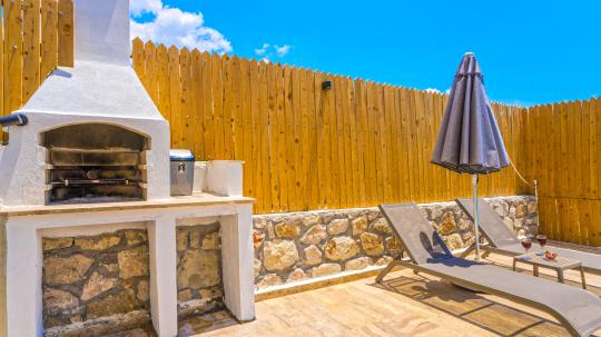 Bahçe : Şezlonglar, güneş şemsiyesi, barbekü, sandalye ve masa bulunmaktadır.