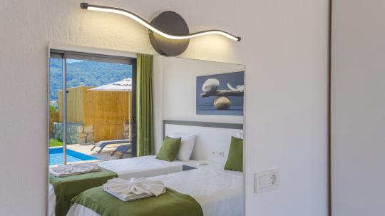 Villa Yenisey, Kalkan’ın Sarıbelen bölgesinde bulunan 2 yatak odası ve 4 kişilik kapasitesiyle size özel havuzlu, lüks villalarımızdan biridir. Özenli lüks dekoru, ince dokunuşları ve dizaynı villa tatilinizi keyiflendirecek ve siz değerli misafirlerimizde tatilinizin hiç bitmemesi isteğini uyandıracaktır. Temiz havası sayesinde son derece konforlu bir tatil geçireceğiniz Villa Yenisey muhafazakar olarak dizayn edilmiş; çekirdek aileler ve balayı çiftleri için oldukça ideal seçeneklerden biridir. İki kat üzerine kurulu villa oldukça kullanışlı ve zevkli bir şekilde döşenmiştir.