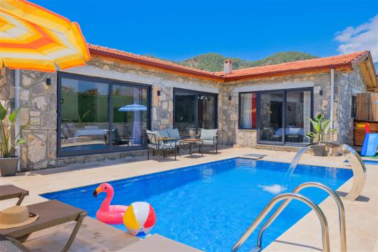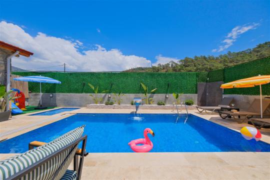 Özel korunaklı yüzme havuzu, konforlu şezlongları ve yaz aylarının vazgeçilmezi barbeküsüyle villamız, gözlerden uzak ve huzurlu bir tatil geçirmek isteyen misafirlerini bekliyor.