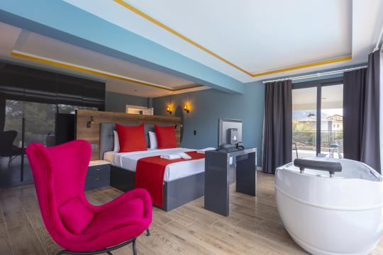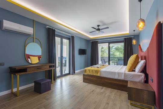 Fethiye Ölüdeniz-Ovacık mevkiinde bulunan villamız 5 yatak odasıyla 10 kişilik konaklama kapasitesi sağlamaktadır. Villamız kalabalık ailelerin ve geniş arkadaş gruplarının tercihleri arasında popüler tatil villası olmaya adaydır. Villaya ilk adımınızı attığınız anda göz dolduracak detaylar ile tüm yıl beklediğiniz o tatil sizleri karşılayacaktır. Muhteşem bir doğaya sahip olan Ölüdeniz ve bu muhteşemliğine eşlik eden modern ve temiz bir mimariye sahip villa siz değerli misafirlerimizi ağırlamak için beklemektedir.