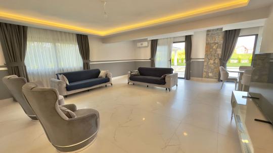 Salon : Lüks ve konforlu salon içerisinde oturma grubu, LCD TV, klima ve havuz terasına direkt çıkış yer almaktadır.
