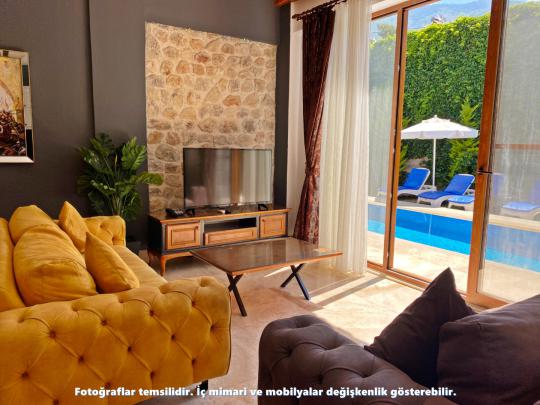 Detayları : Oturma grubu, LCD TV, Klima havuz terasına geçiş ve banyo bulunmaktadır