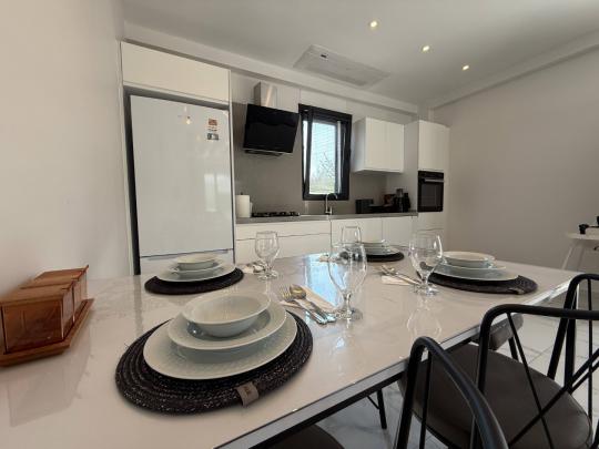 Mutfak : Havuz katında bulunan Amerikan mutfakta buzdolabı, bulaşık makinesi, çamaşır makinesi, yemek masası, fırın, 4’lü ocak, tost makinesi, kettle, yemek takımı, tava, tencereler ve çatal bıçak takımı bulunmaktadır.